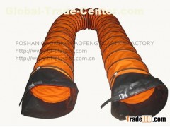 -Black coated fabric to make both ends. With sleeve and buckle on one end, which is easy for connecting to ventilation fans or blowers.